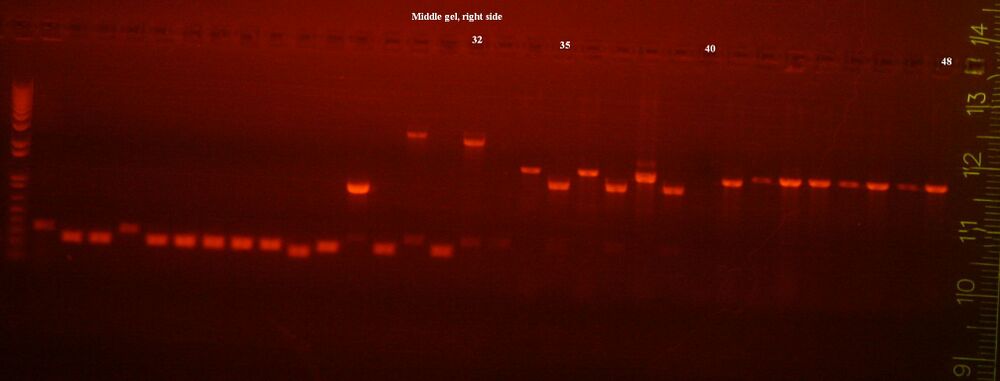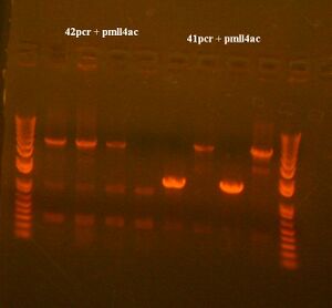 Cotransformation results: Only 41+43d was cotransformed. Unfortunately, d was the only one that looked good on the colPCR. Oh well.