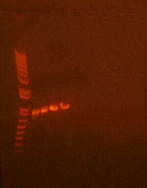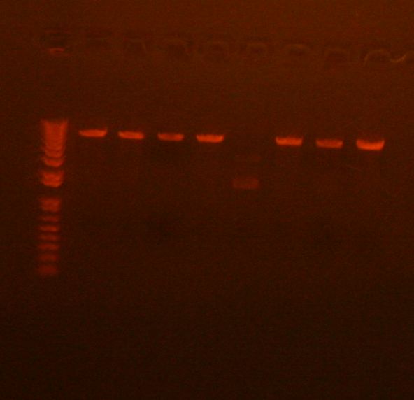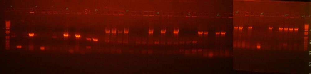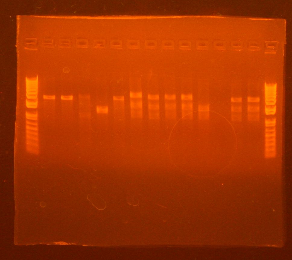 NOTE: The gel was super slanted. All those PCRs are probably the same length.