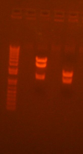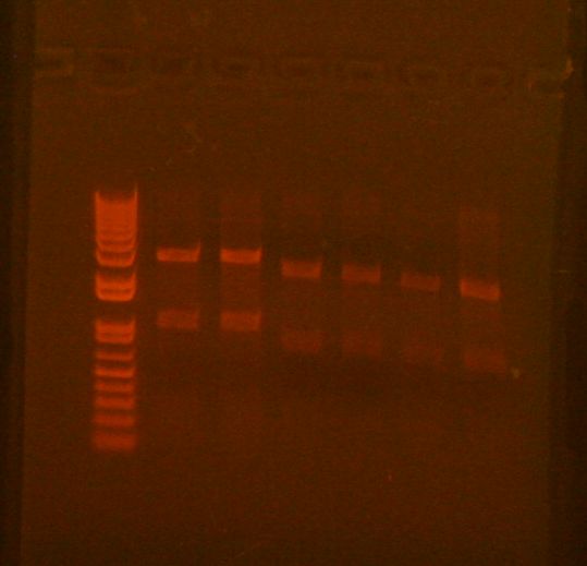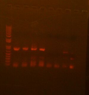 Analysis: Part is about 100bp, so all samples look correct, because the PCR product should be around 300bp.