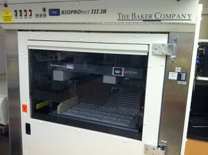 Enclosed robotics platform for packaging, manipulation and screening of lentiviral shRNA (RNAi) vectors integrated with a Liconic incubator for storage after cell plating