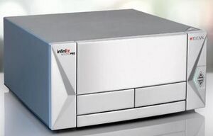 high throughput flow cytometer that uses a patented "air gap delimited" aspiration using a contact sensing probe to map microplane