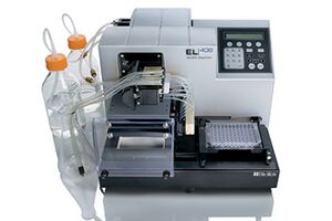 The EL406 Combination Washer Dispenser offers fast, full plate washing along with three reagent dispensers in one, compact instrument… all from the recognized industry leader. The EL406 is the latest advancement in 1536-, 384- and 96-well microplate washing and dispensing incorporating BioTek’s patented Dual-Action™ manifold, optimized washing for loosely adherent cell monolayers, built-in patented Ultrasonic Advantage™ for unattended wash manifold maintenance and up to four wash buffers for complex wash routines.
