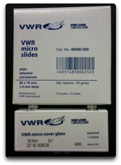 We use slides (#48300-025) and slips (#48366-045) purchased from VWR, pictured below.