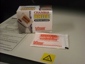 A less detailed step-by-step procedure to clean out the autoclave is included on the inside of the top flap of the box containing the cleaner. It can also be found on page 28 of the manual for the autoclave.