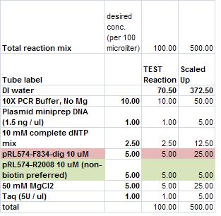 Here is a link to an excel file for the recipe: File:Koch Lab dig, bio PCR example.xls