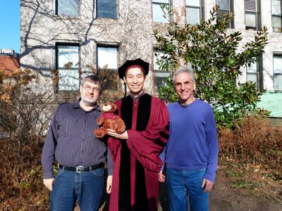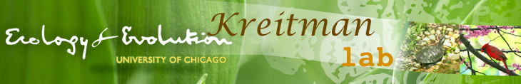 October 2012Bin has successfully defended his doctoral thesis and in December he will officially graduate! He is going to join Erin O'Shea group in Harvard and HHMI. Can't believe that it has been a year since our last update. But be assured that we are not idling. Rather, two manuscripts are being cooked and hopefully we'll be able to get them out of the door early in the new year! October 2011Misha and Manu have joint force (developmental biology + live imaging + quantitative image analysis) to tackle the question "is there a boundary to transcriptional enhancers?" Enhancers were identified as the minimal piece of sequence that can reproduce the endorgenous expression pattern and for historical reasons, their physical boundaries were "defined" by the restriction enzyme cutting site or pcr primer locations, both of which used by researchers to test difference pieces. Later people have found additional transcription factor binding sites outside these "minimal elements". They are not essential for "producing the expression pattern" in a reporter assay, which is qualitative and doesn't examine the fitness results. Do those additional binding sites matter? How? Check out here: PLoS Genetics August 2011Congratulations to Cecelia for assuming a faculty position at the Augustana College at Sioux Falls, SD. She has been such a wonderful colleague and a spiritual core of the lab. We'll surely miss her a lot and best wishes for her new lab! Also leaving the lab are Levi Barse and Desiree Dickerson. Levi has started as a technician in the lab and over the two year period he has contributed significantly to the project of fly models for diabetes. Desiree was an undergraduate research assistant and has done an honor's thesis work in the kreitman lab. Congratulate both for getting to their next position and good luck for their future! July 2011Cecelia Miles' collaboration with Jun Ma's group on the scaling of Bicoid gradient in artificially selected lines for egg size has been published in the journal of Development. Check out it here! pubmed April 2011Bin He's work on the role of positive selection in transcription factor binding sites turnover has been published on PLoS Genetics. Check out here. pubmed Jan 2011John Reinitz's group joined our department from their previous location in Stony Brooks University. We now created a Kreinitz lab, which is officially up and running! The joint force of evolution + mathematical modeling of enhancer function will surely be super cool! Be sure to follow our latest news! December 2010Susan Lott's work on mapping genetic locus underlying pattern formation differences between drosophila species has been published on EVOLUTION. Check out here. pubmed July 2010Cecelia's work on artificial selection on egg size causing detectable differences in expression patterning got accepted and published in EVOLUTION. Check out the story! pubmed June 2010Congratulations to our graduates! Sarah Carl is headed to Cambridge and Anna McGeachy is headed to Johns Hopkins. Go Class of 2010!! Welcome our new students from The College, Reece DeHaan, Desiree Dickerson, and David Gittin! Group PicturesThe Kreinitz lab at large in 2012 springClick on image to see names of people