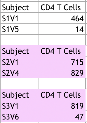 - Those subjects highlighted in pink were subjects who had future visits, however, had not been sequenced at those visits.