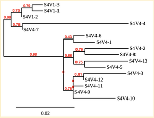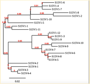 - Created phylogenetic trees on Phylogeny.fr for each subject using clones of first and last visits.