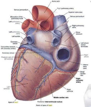 Prior to dissecting the calf heart, make sure you review the path of blood flow through the heart in adult and fetal mammals. When you dissect the heart, make sure to identify the underlined terms in this section.
