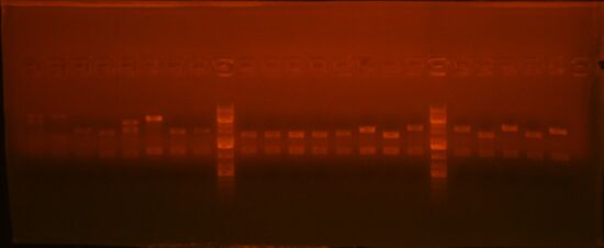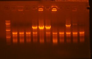 I decided to restriction map the minipreps from "140L manual minipreps stock plate" to see if the parts that we thought were in Righty/Lefty were indeed in the correct cell lines. Below is the gel (BamHI/XhoI digest) here are the lanes/expected band sizes: