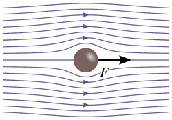 Stokes flow, also referred to as creeping flow, is a type of laminar flow with a Reynolds number less than 1.7 An example of Stokes flow can be seen in Figure 4, where from the flow lines it can be seen that the fluid flows around the ball without crossing other flow lines, or mixing, or leave any eddies in its wake.