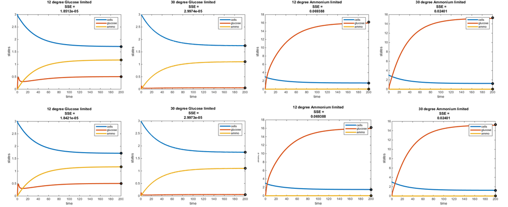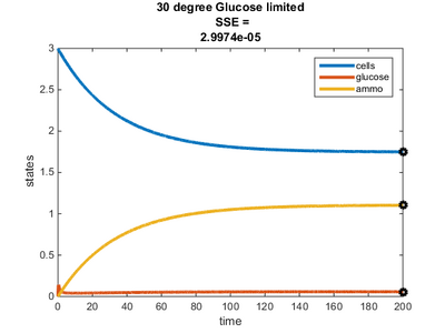 - Residual concentrations of ammonium and glucose were adjusted to be within the range provided by the Tai et al. (2007) paper to best fit the model