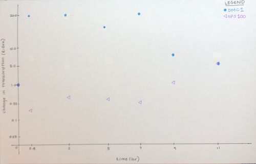 - TEF4 was repressed over the course of the experiment. This may be because the cell would be under starvation conditions and would likely save any remaining energy, or use it towards the process of gluconeogenesis, as opposed to using it to produce proteins it does not need.