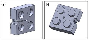 The building bricks come in a variety of sizes, the most common ones being 2x2 studs and 2x4 studs. As seen in Figure 3, channels are precisely micromilled to ensure that they perfectly align when bricks are assembled together. Misalignment could lead to leaks or clogging of flowing material [3]. Most channels additionally have an O-ring attached to each inlet and outlet to fill the gap between two adjacent blocks, thereby avoiding leaks [4].