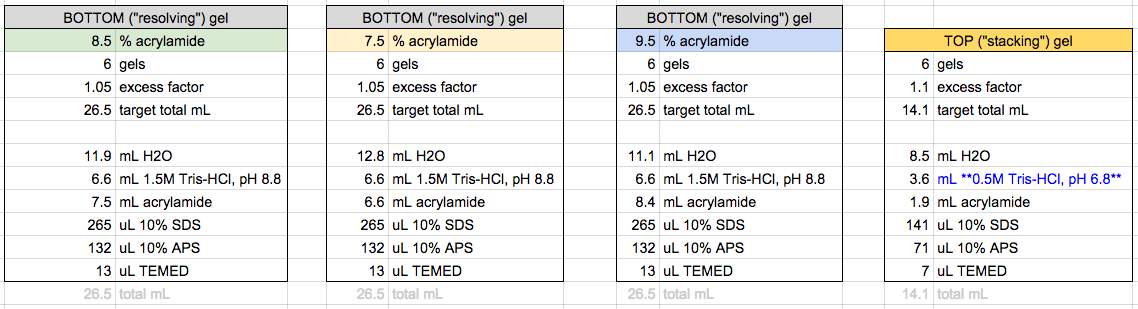 You can download/copy the file and change the recipes as you like to get different gel percentages and batch sizes.