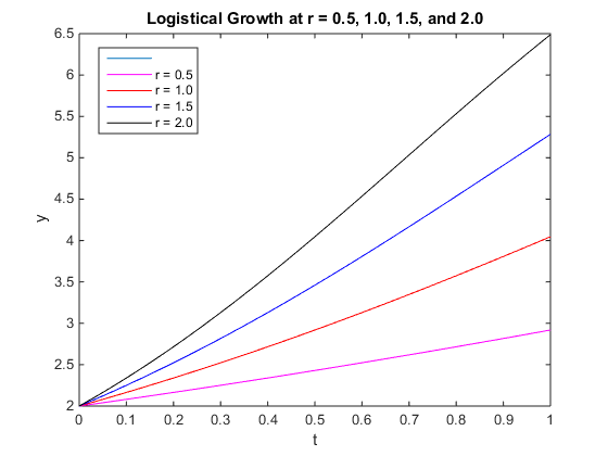 - For r=2.0: y4=(x0*K)./(K*exp(-2.0*t)-x0*exp(-2.0*t)+x0)