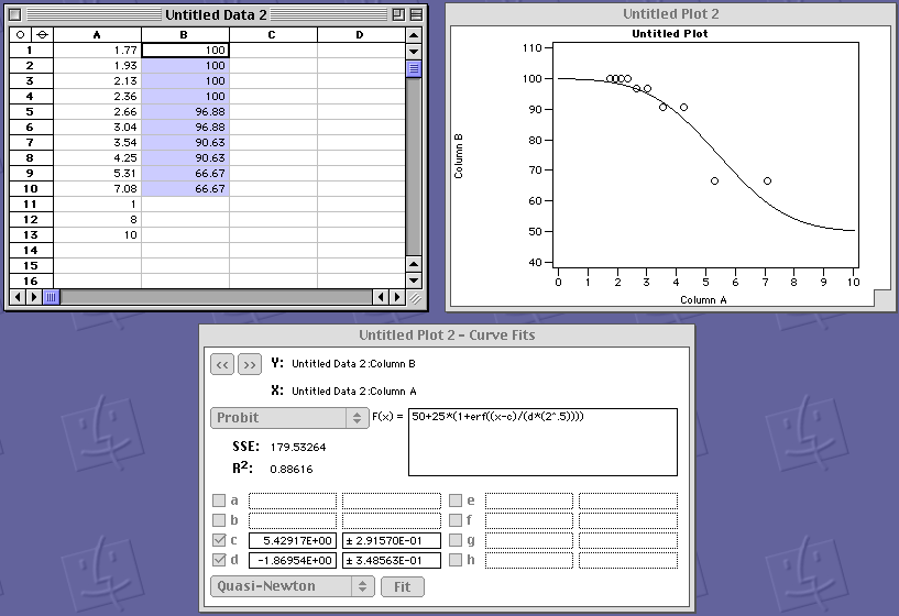 OK, here are two screen captures for MacCurveFit.