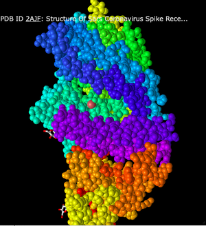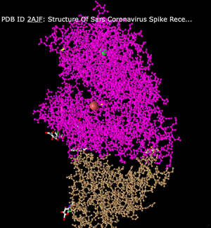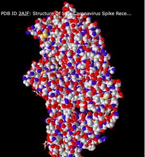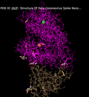 Next, I looked at the civet ACE2-spike protein structure used in Figure 4B of the Wan et al. paper. Again, I used iCn3D to observe the structure.