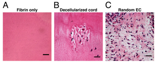Forming patterned endothelial cell (EC) cords are a newer method that employs the use of microfluidic processes to develop a device that can be molded into almost any shape, that is easily replicable, and has a surface that is customizable. A material known as PDMS is used to make the mold (which is custom designed through the processes of photo- and soft- lithography). PDMS has become well established over its ability to serve as a suitable cell culture surface. In regards to EC cords however, PDMS is preferred for its nonpolar surface which allows the PDMS to be peeled away from the cords after they have been polymerized within the mold. Once made, the EC cords not only provide a clear cut path for the veins to progress down, but also the distance cords have from each other can be predetermined so that angiogenesis between veins is promoted to support superior blood flow. This method of bolstering the vascularization process makes EC cords one of the more attractive options for creating vascularized tissues to study metastasizing cells in. EC cords also only need a fraction of the cells that a prevascularized random arrangement would need. [8]