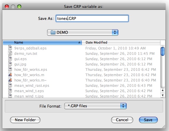 Finally, you'll be asked to provide a filename for the new GRP variable you've created. Use "tones.GRP":