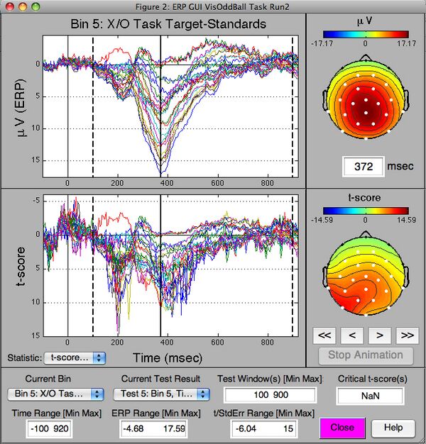 - gui_erp: Creates a GUI for exploring the ERPs in a GND (or GRP) variable. Visualizes ERP standard error of the mean, t-scores, and global field power as well. Useful for visualizing the results of mass univariate t-tests and exploring your data.