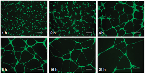 This is very useful if one is screening for compounds which promote cell differentiation or vascularization. The angiogenesis assay is determining the influence of compounds on angiogenesis, study genes involved in angiogenesis, and characterizing stem cells or endothelial progenitor cells[26]