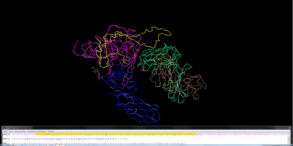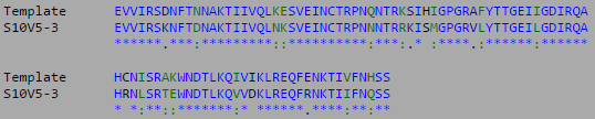 - In order to determine the V3 region, we found the general equivalent to the Markham et al. sequences in the Huang et al. structure. We then highlighted the sequence in the Cn3D software, which in turn highlighted the structure as shown below: