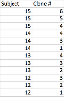 - The clones of subject 15 had a good amount of variance compared to those of the other subjects.