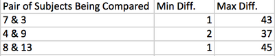 - Finally, the min and max were calculated from a comparison of two subjects: