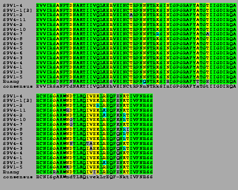We measured variability at each position by identifying the locations with major mutations at them according to boxshade. We also identified positions with more than one major mutation present. Both were found by comparing them to the consensus sequence from Huang et al. (2005).