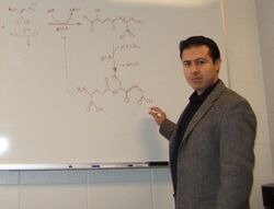 Un área de investigación complementaria que desarrollo, trata de cosechar el conocimiento ganado gracias a estudios de simulación e ingeniería metabólica y aplicarlo a la construcción y encapsulamiento de interruptores moleculares de expresión genética basados en aptámeros. Esta área requiere, adicionalmente, un componente computacional intensivo y utilizará la experiencia adquirida previamente a través de la simulación matemática de la ruta de biosíntesis de pirimidinas en Escherichia coli. Diferentes modelos matemáticos de control genético y alostérico ya han sido formulados y, dado que la biosíntesis y utilización de pirimidinas constituye un elemento esencial del mantenimiento del metabolismo celular de todo tipo de organismos, podríamos extrapolar algunos de éstos modelos a otras redes de regulación. Estoy interesado en el desarrollo de modelos determinísticos y estocásticos de sistemas de expresión genética que nos permitan iluminar la formulación de hipótesis y acelerar nuestro conocimiento del control metabólico. Experimentalmente, este tipo de investigación me permitirá construir moléculas de ARN que puedan ser utilizadas como interruptores para el control de expresión genética dentro de proto-células sintéticas.