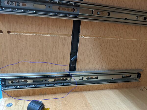 If the drawers do not sit nicely in the cabinet (i.e. drawers overlap or there are large gaps), you may need to adjust the tracks on the drawers. The screws on either end can be loosened and the tracks slightly moved (circled in the picture). Hopefully this is enough to do the trick! Otherwise check that you put the drawers back in the same slots!
