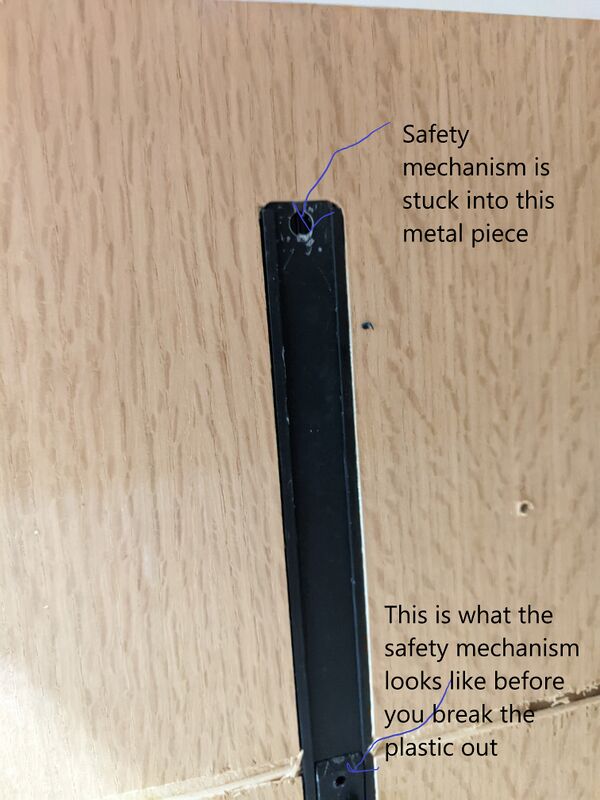 - To get at the safety slider, you need to remove the tracks for the drawers. See the picture. You will need a Philips head screwdriver to do this. Make sure to collect all of the screws in a tip box or beaker.