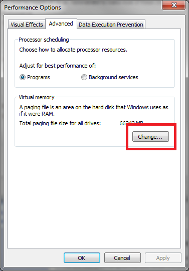 - If 'Automatically manage paging file size for all drives' is checked, uncheck it