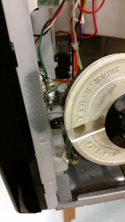 - Remove the screws holding the case on. There are 5 screws on the back of the unit and one per each side (7 total, 5 silver, 2 black). There are 4 plastic brackets on top of the microwave that need to be removed. Place the screws and brackets in a beaker, or similar, so that you don't lose them.