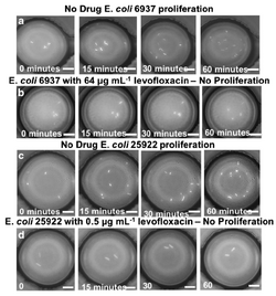 A simple application of microfluidics to characterize bacteria is the determination of antibiotic susceptibility, which can be accomplished relatively fast on a small scale. Li et al.[21] designed a method for determining minimum inhibitory concentrations for multiple antibiotics within 8-14 hours, which is an improvement on the typical timescale (2 to 4 days) required to obtain these results. Other microfluidics-based methods for determining antibiotic sensitivity include using fluorescent biosensors to track the proliferation of small numbers of cells[22] and using spectroscopic techniques to assess antibiotic susceptibility of captured bacterial cells.[23] Identifying cellular resistance or susceptibility to specific antibiotics in a rapid manner is necessary for efficient treatment of bacterial infections, and can reduce the prescription of unnecessary antibiotics[24] and ultimately help prevent the further development of antibiotic resistance.