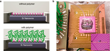 For the first way, a porous and biomolecule permeable polymer layer is added on the surface of the nanomaterial as shown in Figure 10, the polymer layer dramatically changes the dielectric properties in aqueous solutions, thus reducing the impact of screening and making it possible to detect analytes directly in real-time in physiology-relevant high ionic strength solutions.15