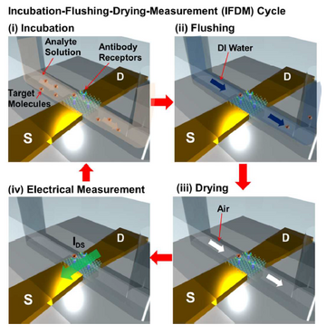 3. Ryu, B., Nam, H., Oh, B. R., Song, Y., Chen, P., Park, Y., ... & Liang, X. (2017). Cyclewise operation of printed MoS2 transistor biosensors for rapid biomolecule quantification at femtomolar levels. ACS sensors, 2(2), 274-281. https://doi.org/10.1021/acssensors.6b00795