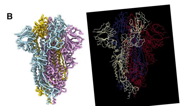 - Comparison of the S protein structure using cryo-EM from the paper and 3D viewer on Protein Data Bank can be shown below: