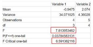 - Clicked on Data Analysis tab->F test 2 Samples for Variance