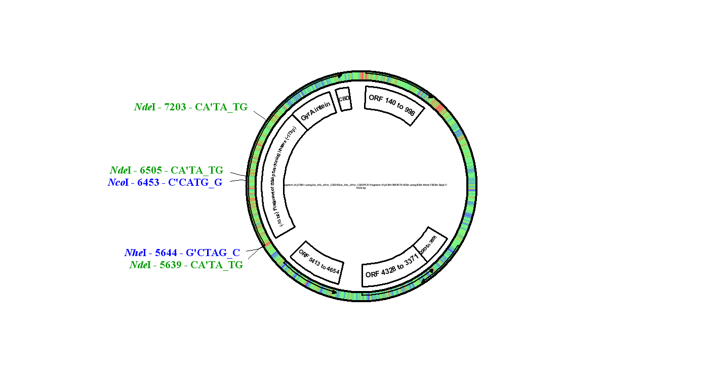 BSA cloned into the NheI and SapI sites of [[../pTXB1His| pTXB1His]]