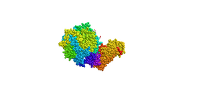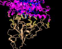 - Figure 7: 3d image of SARS-CoV RBD (the year 2002) complexed with Human ACE-2 (2AJF) edited with the sphere style and spectrum colored.