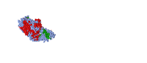 - Figure 8: 3d image of SARS-CoV RBD (the year 2002) complexed with Human ACE-2 (2AJF) edited with the sphere style with the secondary structures highlighted with the beta-sheets green and the alpha-helices in red.