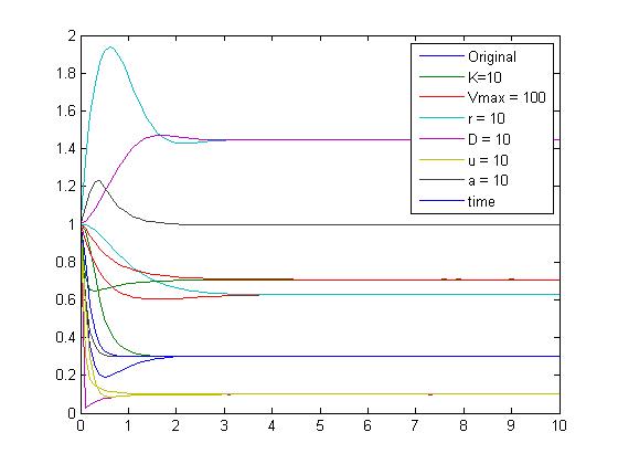 - Can you make any observations about how the system behaves? The matlab models of the enzyme kinetics may be helpful: this system has two state variables, so you’ll need x(1) and x(2), dxdt(1) and dxdt(2) as in the Michaelis‐Menten substrate/product model.