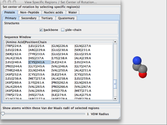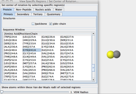The image above is similar to the first screen shot on this page, it shows where the DNA is and where the protein is.