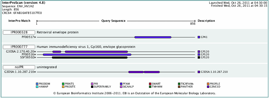 - Next I found the domains of HIV gp120 using InterProScan.