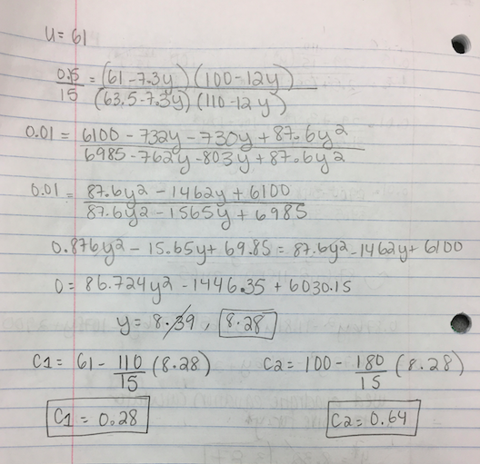 - Calculations for y, c1, and c2 for the various u1 linked below.