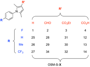 There are picture- and strings- based lists of all OSM compounds. Picture files on this wiki page (and original Chemdraw files) may all be found here. Strings are additionally listed below for the benefit of search engines.