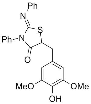 TCMDC-124103, CHEMBL597849, CHEMBL: 597849 Cc1cc(cc(c1)n2c(cc(c2C)C=C3C(=O)NC(=Nc4ccc(cc4)Cl)S3)C)C, InChI=1S/C24H22ClN3OS/c1-14-9-15(2)11-21(10-14)28-16(3)12-18(17(28)4)13-22-23(29)27-24(30-22)26-20-7-5-19(25)6-8-20/h5-13H,1-4H3,(H,26,27,29)/b22-13+, WVSGKKHBDQIDEU-LPYMAVHISA-N