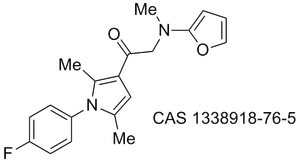 OSM-S-86 FC1=CC=C(N2C(C)=CC(C(N(CC)CC(N([H])C3=C(F)C=CC=C3F)=O)=O)=C2C)C=C1 InChI=1S/C23H22F3N3O2/c1-4-28(13-21(30)27-22-19(25)6-5-7-20(22)26)23(31)18-12-14(2)29(15(18)3)17-10-8-16(24)9-11-17/h5-12H,4,13H2,1-3H3,(H,27,30)